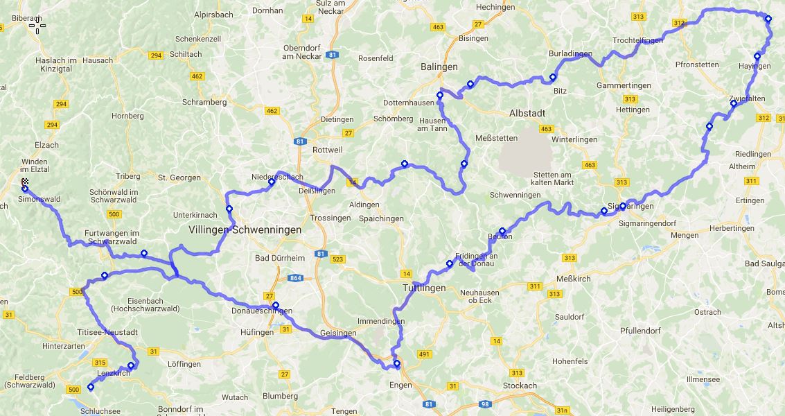 Auf dieser Tour halten wir uns nach der Wutachschlucht direkt nördlich Richtung St. Georgen, Schramberg und Alpirsbach. Anschliessend geht es dann übers Kinzigtal wieder retour.
