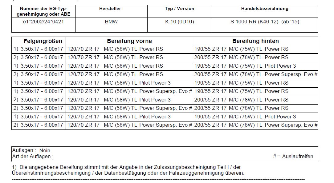 Reifen - Freigaben - Erfahrungen - S 1000 R - S1000R - M 1000 R.