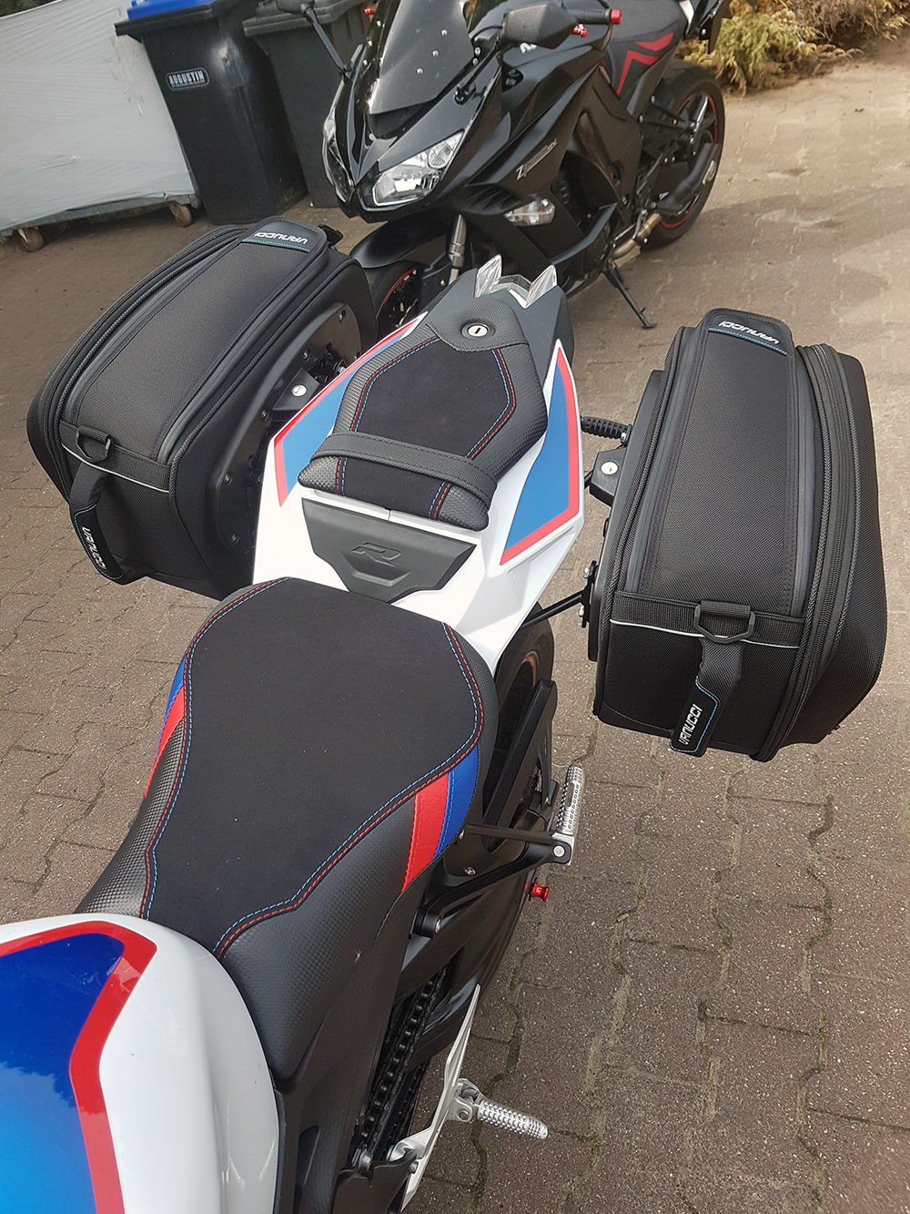 Ich habe die Kriega US 30 Tasche im Einsatz. Ich persönlich finde die Tasche super, da diese erweiterbar ist, wasserdicht und perfekt auf den Soziussitz der S1R passt. Auch hatte ich keine Scheuerstellen am Heck feststellen können.
