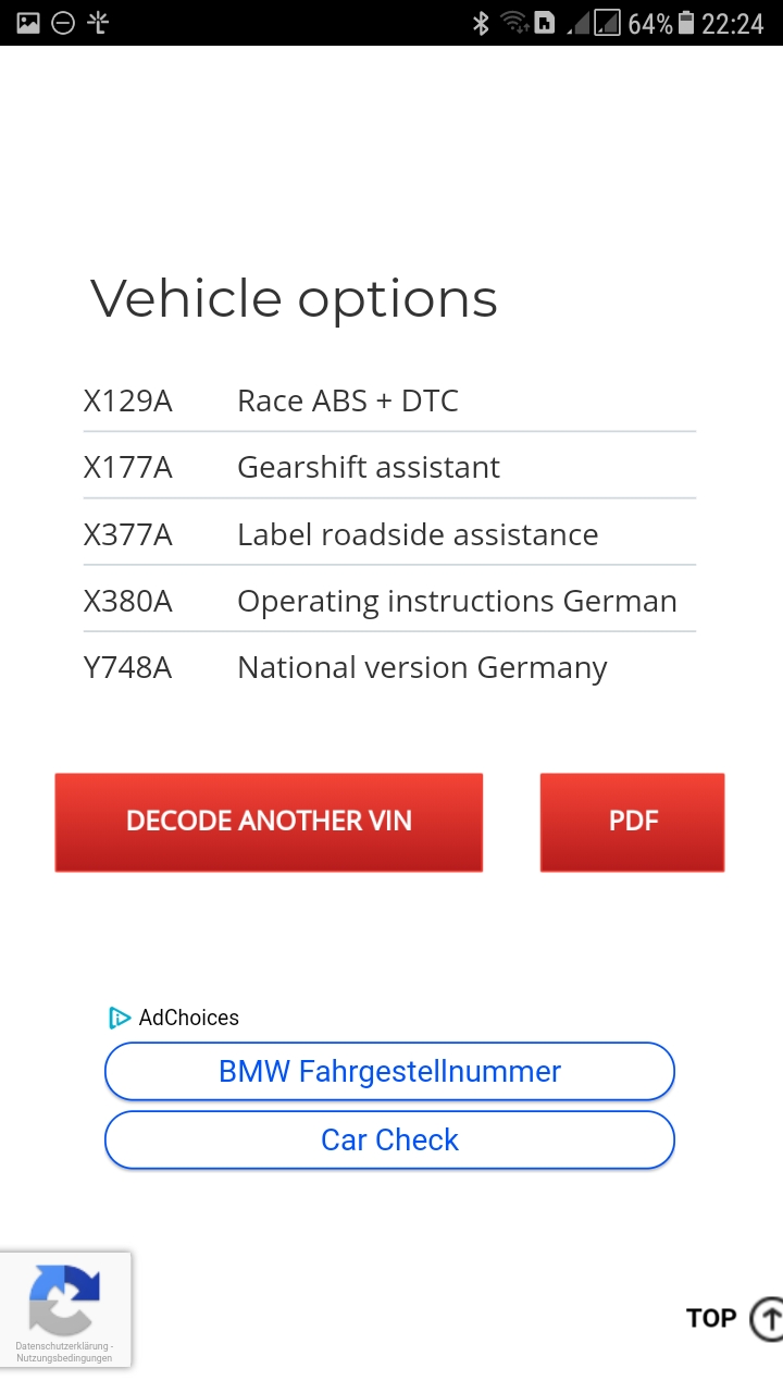 einfach die letzten 7 stellen der fahrgestellnummer eingeben. mit der DB scheint aber im moment etwas nicht in ordnung zu sein... mein töffli hat grad einen alcantara anthrazite dachhimmel (776) statt fahrersitz niedrig :lol: