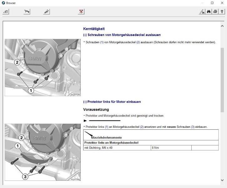 BMW-Protektoren Motor: Schrauben mit Dichtring links M6x40 und rechts M6x30 - jeweils 8 Nm