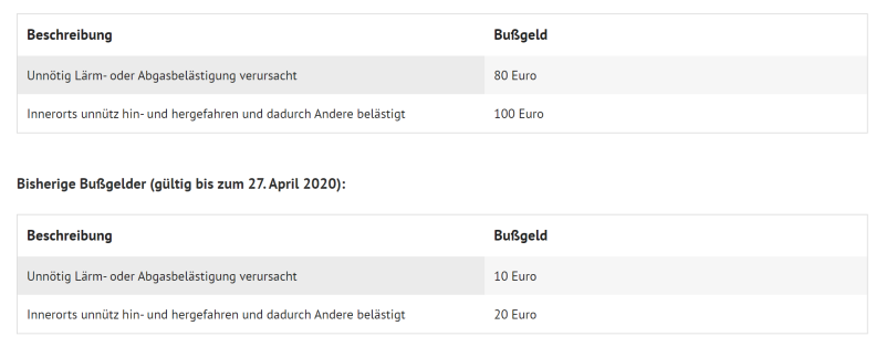 Außerdem hat eine innerörtliche Überschreitung des Tempolimits um 21 km/h weitreichendere Konsequenzen als bisher. Zu einem Bußgeld in Höhe von 80 Euro sowie zwei Punkten in Flensburg erwartet den Temposünder nun ein einmonatiges Fahrverbot. Außerorts greifen diese Strafen (95 Euro, Fahrverbot für einen Monat) ab einer Limitübertretung von 26 km/h.