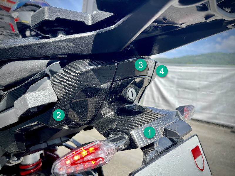 Das tolle ist: Das Kennzeichen inkl. dem Halter wo man das Kennzeichen und den Rückstrahler (auf den Bildern noch nicht montiert) befestigt hat, kann man für die Rennstrecke einfach mit drei Schrauben entfernen.