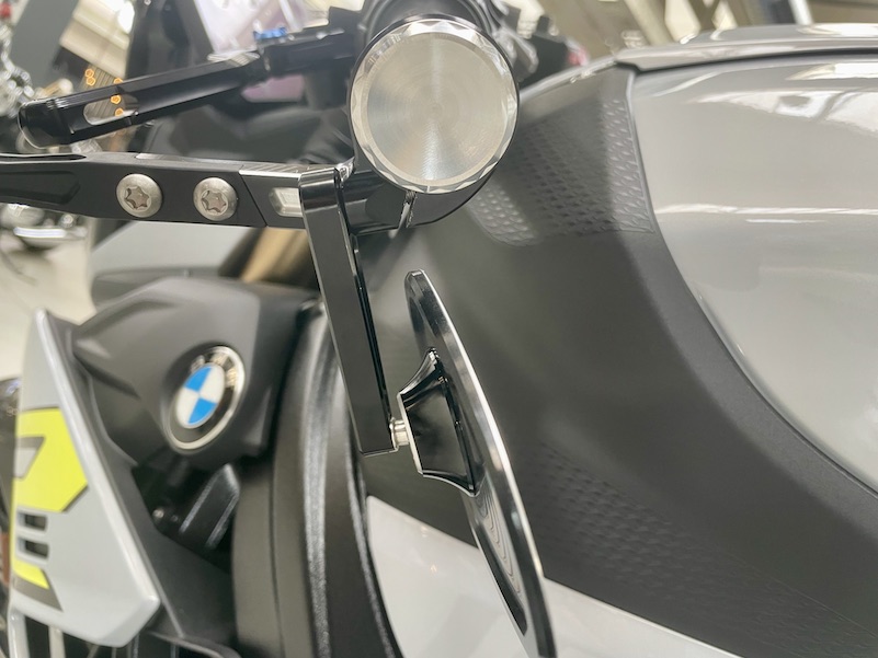 MCA Frankfurt bietet auch Lenkerendenspiegel in Kombination mit dem Frästeilepaket an. Die Halterung haben Sie selbst hergestellt.