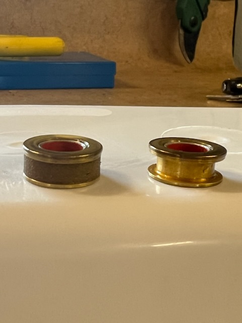 So, die Reparatur des LD hatte eigentlich gut geklappt aber beim zusammen bauen und entlüften hatte ich scheinbar paar Tropfen Öl zuviel drin und hab den neuen Wellendichtring am Ende nicht mehr tief genug rein bekommen, er war aber schon zu tief drin, so dass ich ihn nicht mehr raus bekam, hab vergessen einen kleinen Bindfaden zwischen Kolbenstange und Dichtring zu legen damit überschüssiges Öl entweichen kann und dann den Faden raus zu ziehen :ahh: also wieder alles auseinander gebaut, dabei ist mir an einem der beiden Messingringe, die jeweils rechts und links unter den Wellendichtringen liegen dieser komische, ich sag mal "Schaumstoffring" der in der Nut des Messingrings sitzt, zerbröselt. Jetzt bin ich mir nicht sicher, welche Funktion dieser Schaumstoff hat, abdichten tut es definitiv nix, dafür ist der Dichtring da, theoretisch könnte ich das auch ohne diesen Mini Schaumstoff Ring (5mm breit, Außendurchmesser ca 19mm, Innendurchmesser ca 15mm) zusammen bauen und gucken, ob alles funzt, will es aber wieder alles so zusammen bauen wie es war.