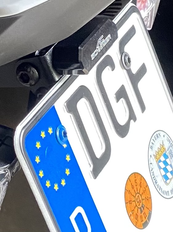 Genau, 3mm dick und die Größe vom Kennzeichen. Ich habe dummerweise beim Bohren der Löcher den Rückstrahler nicht dran gehabt und hätte die Löcher ein kleinen Tick anders Bohren müssen. Deshalb verdeckt die Platte minimal den Rückstrahler. Habe mal ein Foto angehängt, das Kennzeichen schnell provisorisch hingeklebt. Meint ihr das passt so mit dem Rückstrahler, ist ja noch gut sichtbar und nur minimal verdeckt? Sonst lass ichs einfach so.