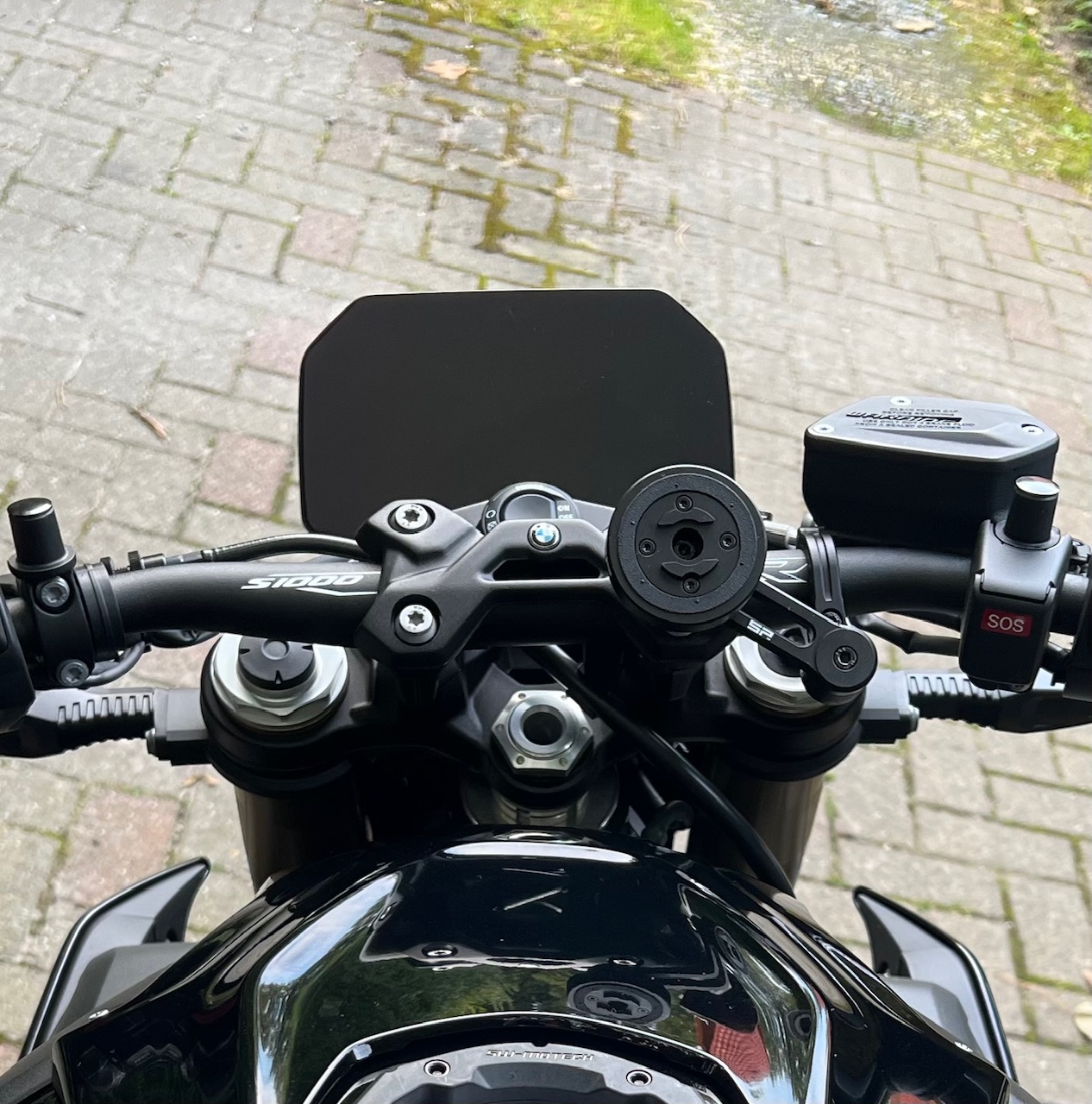 Würde ich heute allerdings nochmal neu und explizit für die S 1000 R (oder die M) kaufen, dann würde ich den Bar Clamp Mount Pro nehmen. Da wird eine Schraube der Lenkerklemmung getauscht um die SP Connect-Halterung zu montieren. Denke das sollte auch noch halbwegs hinhauen mit dem Sichtwinkel, muss man eben überlegen welche Schraube man wählt. Kann aber sein, dass es dann sehr dick aufbaut wenn noch das Lademodul bei dir draufkommt. Die Beispielfotos auf der Website von SP Connect sind übrigens auch von einer R.