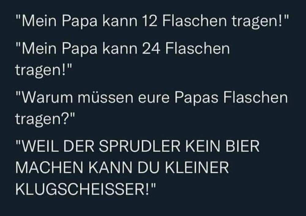 Dann sagt er: "Stimmt, aber nach meiner Statistik reiten immer noch mehr Männer auf meiner Erfindung, als auf deiner!"