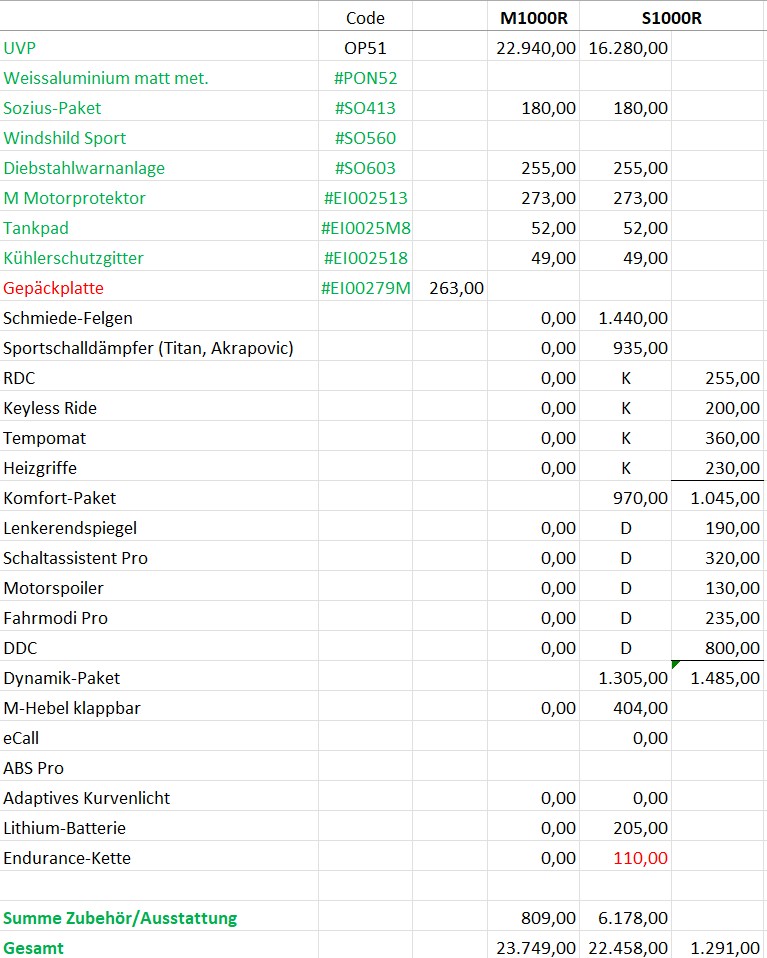 Das mag durchaus richtig sein, nur gibt es da einen klitzekleinen Unterschied namens Shift-Cam-Motor. Und nachdem ich einen solchen an meiner 2020er RR hatte möchte ich den nicht mehr missen. Aus dem Grund hab ich jetzt (mit 71!) meine RR durch eine M-R ersetzt. Mit dem breiten Lenker ist das ein völlig anderes (und angenehmeres) Fahrgefühl (LS only) - fast wie Supermoto ;)