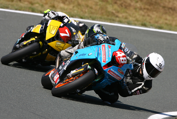 Schleiz: Hitzeschlacht ... 38 C° ... Q1 nicht optimal ... Qualifyer hat nicht gut gepasst ... P4. Q2 top, aber bei der Mittagshitze nicht mehr die Zeiten der ersten 3 unterbieten können ... Rennspeed top mit Rennreifen. Im Rennen dann bei tropischen Temperaturen auf Platz 1 gefightet ... endlich der verdiente Lohn. Race 2 ... schwierig, da die SBK-Piloten Smrz und De Boer im SST-Pulk mitten drin waren und Dominik trotz Top-Zeiten nicht zum Angriff kam. Zum Schluss dann noch von der 1199 von Marc Moser (Gaststarter FIM Superstock) abgefangen worden. Platz 3 ... aber 45 Punkte und zurück in der Meisterschaft auf Platz 3 vor Bovee (Alpha-Racing).