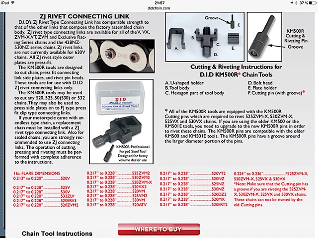 Für DID habe ich das hier gefunden, und dann meine 525er ZVM-X auf 5,7mm vernietet (mit dem Kellermann-Kettennieter):
