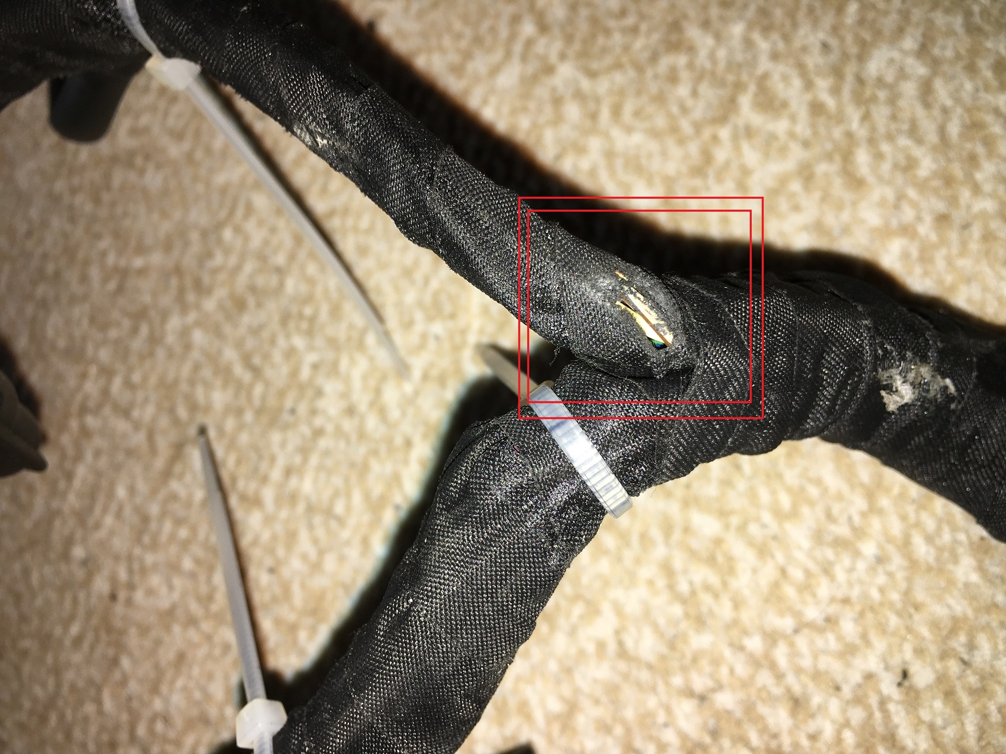 Es war sogar auch die schwarze Farbe vom Rahmen weg gescheuert ... deshalb konnte es auch zu einem masseschluss kommen. Da an dieser Stelle der Rahmen ein bisschen nach außen geht und das Kabel dort rumläuft ... habe ich nun als kleine Verbesserung einen Schaumstoff zwischen Kabelbaum und Rahmen geklebt. Somit sollte es nun zu keiner Scheuerstelle kommen können.