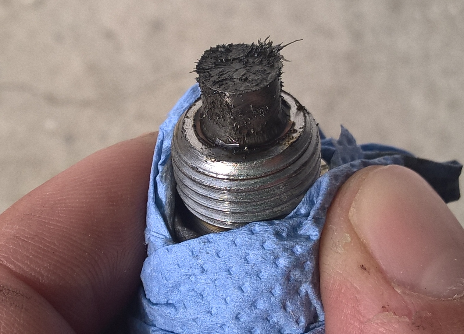 Beim Ölwechsel dann die Gewissheit, dass was nicht stimmt: Späne an der Ölablassschraube und die nicht zu klein.