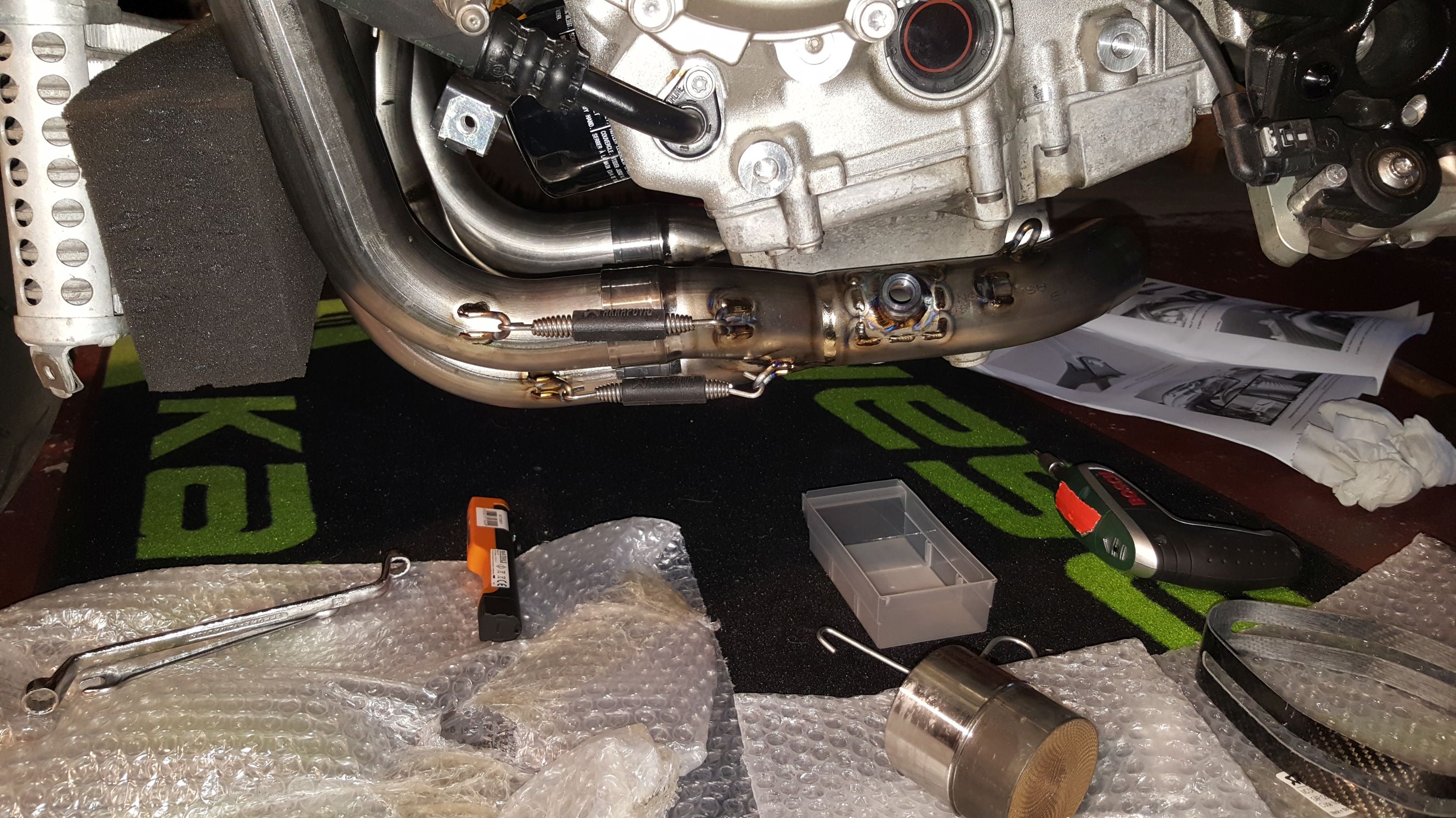 Achte darauf, dass die Motorspoiler nicht an den Krümmern anliegen, mein 1. Händler hat das gleich beim Neukauf und der Montage der Anlage zustande gebracht, dass das äußere Krümmerrohr direkt am Plastikspoiler anliegt, ist natütrlich geschmolzen![]()