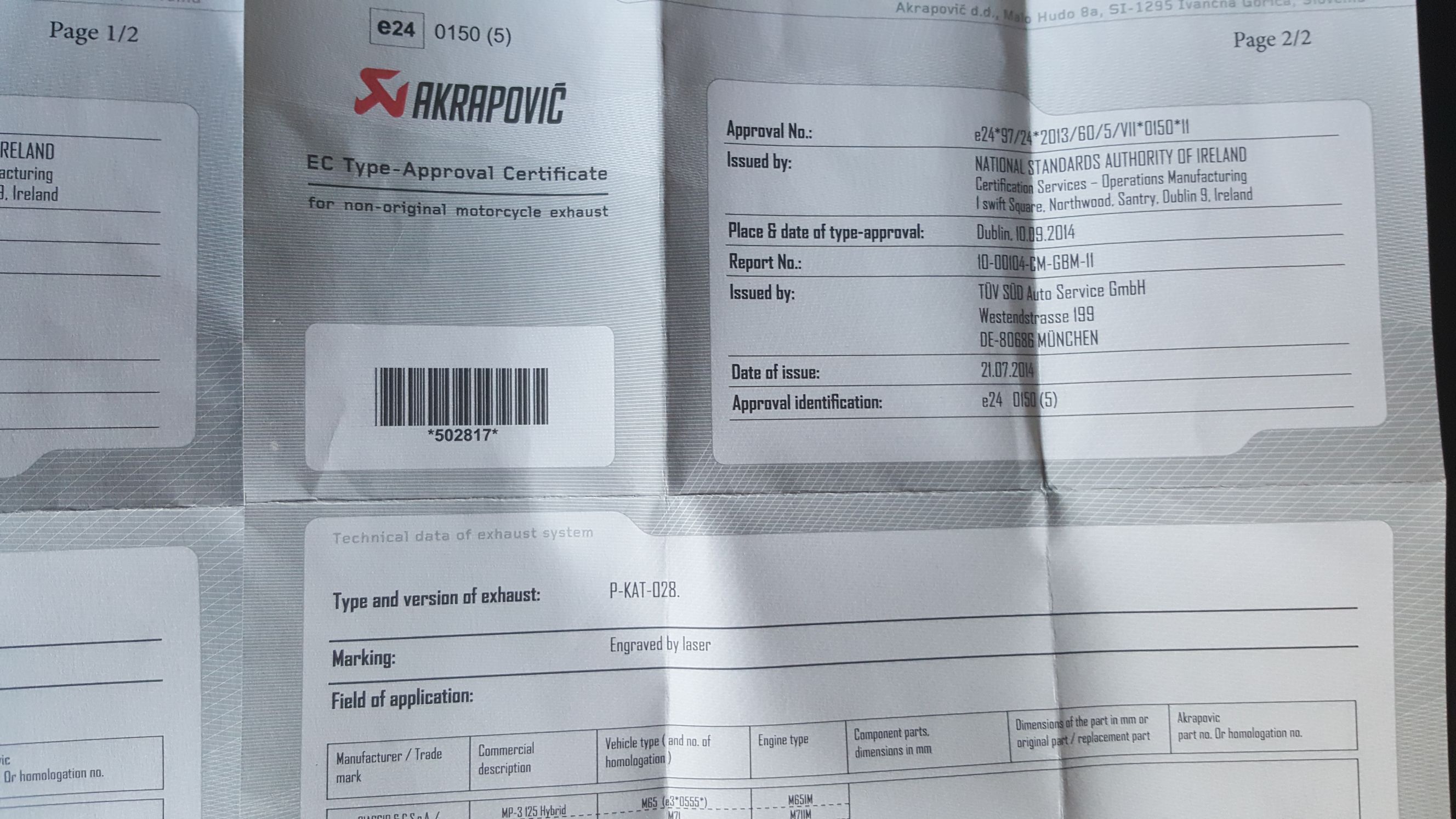 Hatte ihm das e24 Heftchen vom Kat mitgegeben. Nur das lag bei der Anlage bei. Der ESD hat ja eine ABE.
