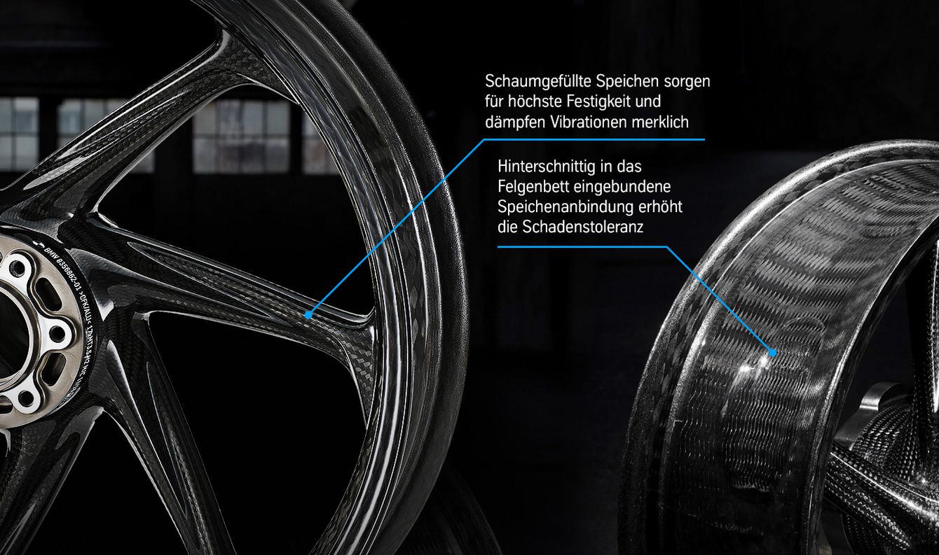 Rahmen und Felgen aus Carbon sowie die veränderte Schwinge sind nicht zu vergessen
