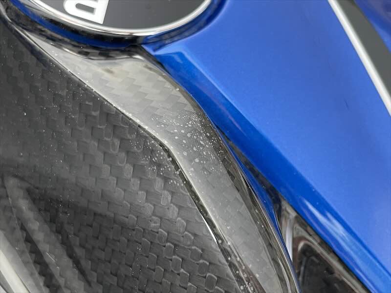 ich habe die Tage gemerkt, dass ich auf den Carbonteilen weiße/helle Flecken sehe. Es sieht so aus als ob sich die Klarlackschichr lösen würde, allerdings merkt man mit dem Finger keine abbröckelnden Stellen oder dergleichen.