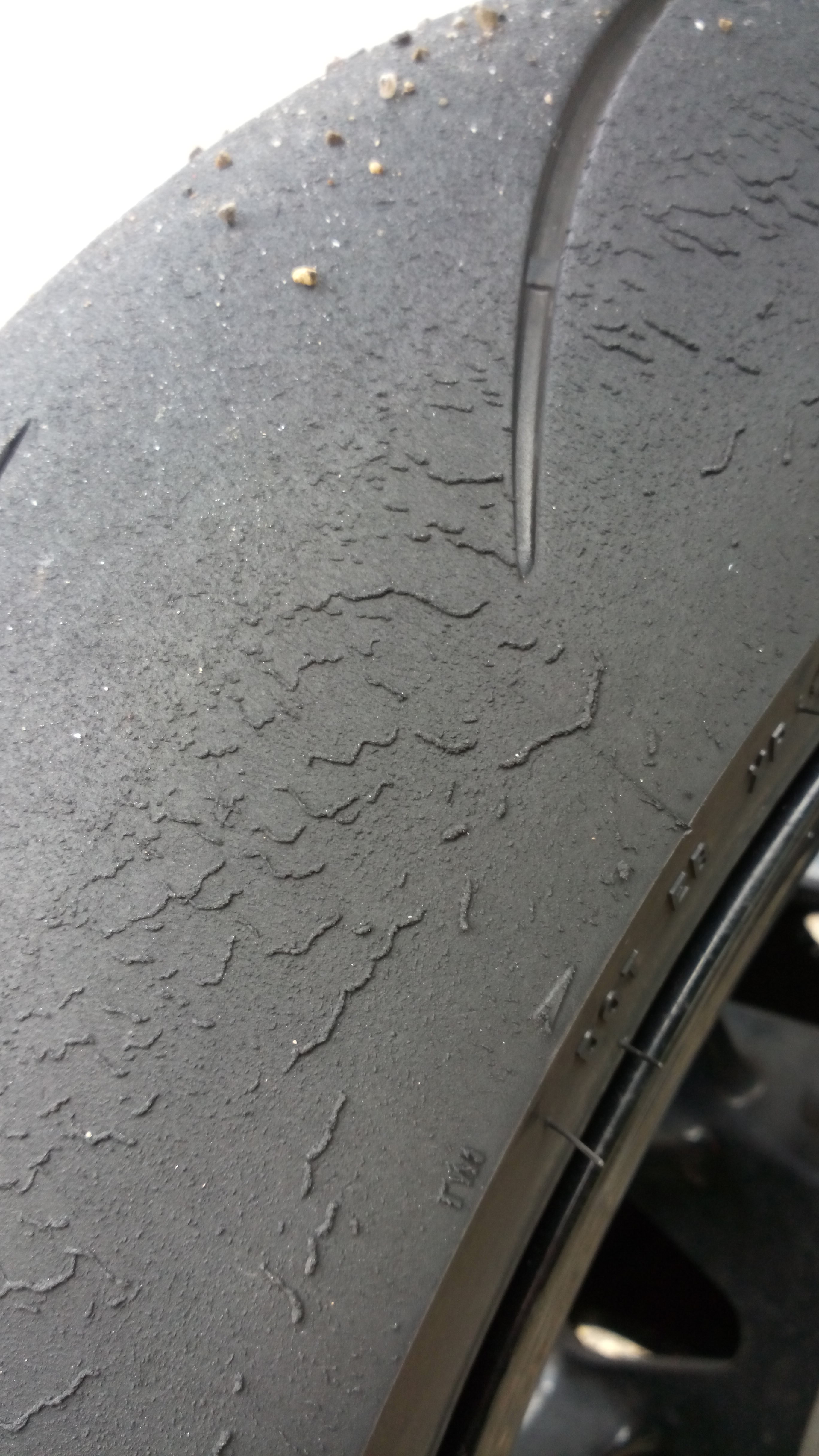 Nach 10 Turns (Motorrad mit zweitem Fahrer geteilt) unter definitiv nicht maximaler Beanspruchung war der Reifen am Abend am Ende (an den Rändern (Mitte war noch OK)).