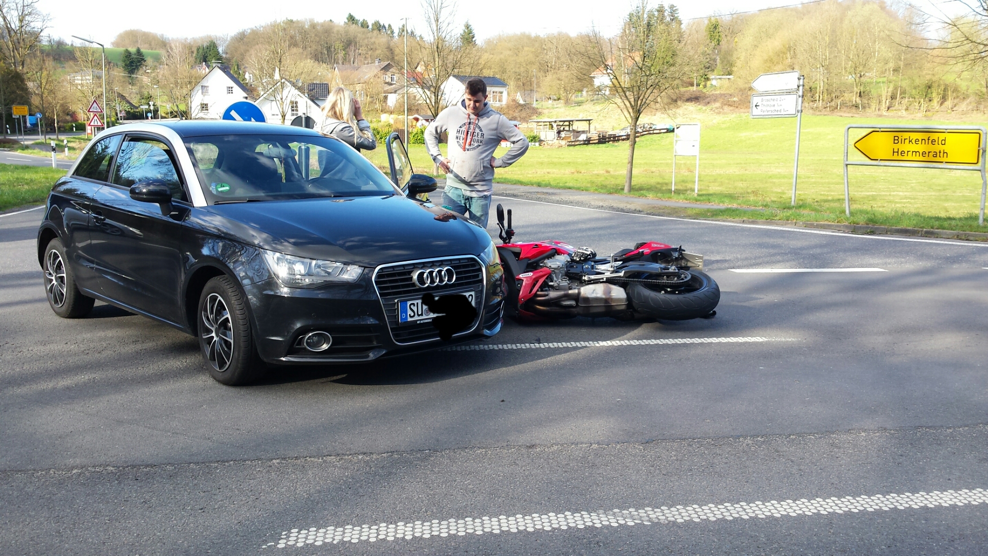 Der Fahrer hat mich gar nicht kommen sehen und war sehr froh, als er mich gesehen hat wie ich rumgesprungen bin und mich vor Wut am Helm gefasst hatte :ahh: Maschine ist fast neu, 5000 km drauf.. Die Maschine hat ÄUßERLICH nur paar kleine Kratzer vom "Umfall". Mir selber ist gar nichts passiert.