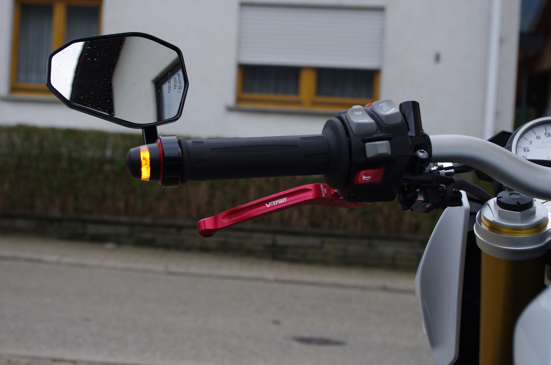 Mir fehlt noch die Schraube um den Bremsflüssigkeitsbehälter fest zu machen, deswegen ist der Spiegel da noch dran.
