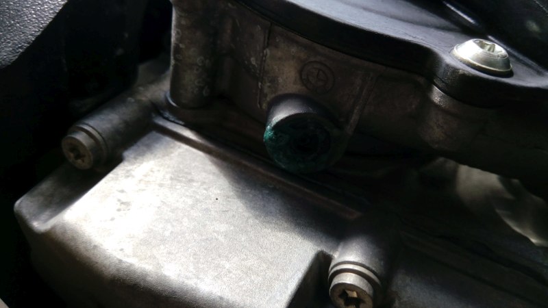 Bei der letzten Inspektion habe ich angesprochen, daß die Pumpe (unterhalb) wohl ab und zu etwas Kühlwasser rausdrückt und manchmal vor dem Endtopf als weiße Miniflecken sichtbar werden, die Fehlmenge ist aber im Ausgleichsbehälter überhaupt nicht feststellbar.