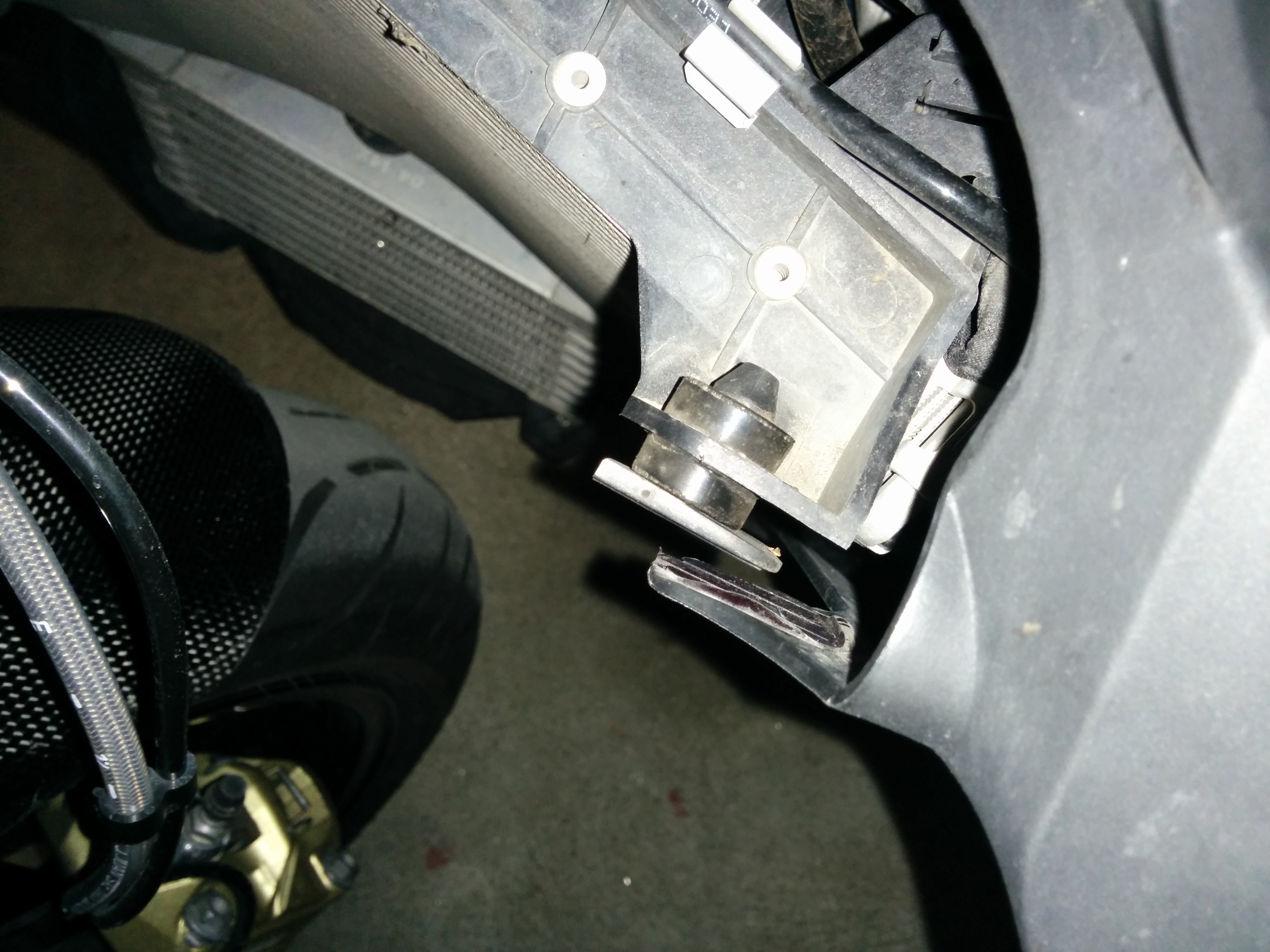 Ich habe bis das Austauschteil da ist alles mit Kabelbinder gesichert. Hält Bombenfest. Denke aber schon das das Problem eher bei höheren Geschwindigkeiten auftaucht. Hatte keine Probleme bis ich im Südtirol war ;-)