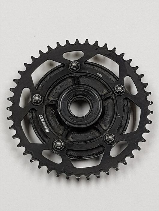 Diese wird mit 2 Stehbolzen und 3 x M6 Titanschrauben an der Felge fixiert, die Antrieb-seite wird wie seither auch über Ruckdämpfer Verbunden.