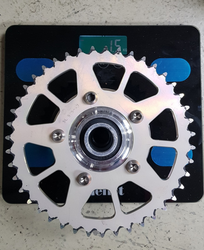 TKCC Felgen hinten 5,8-5,9 KG mit Saller Bremsscheibe und Alu Kettenblatt.