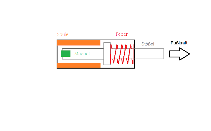 Im inneren befindet sich der Stößel mit einem Magneten an der Spitze. Die Feder drückt gegen die Fußkraft am Schalthebel. Beim schalten komprimiert man die Feder und der Stößel bewegt sich in der in der Hülse befindlichen Spule. Das Ausgangssignal fällt unter 0,5V. Die Zündung wird unterbrochen. Durch die Späne verfälscht sich aber der Wert.