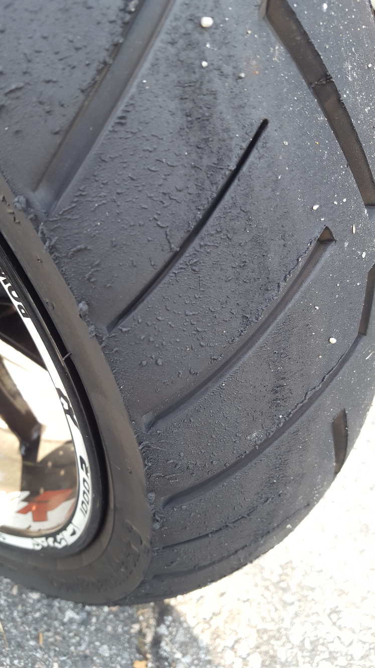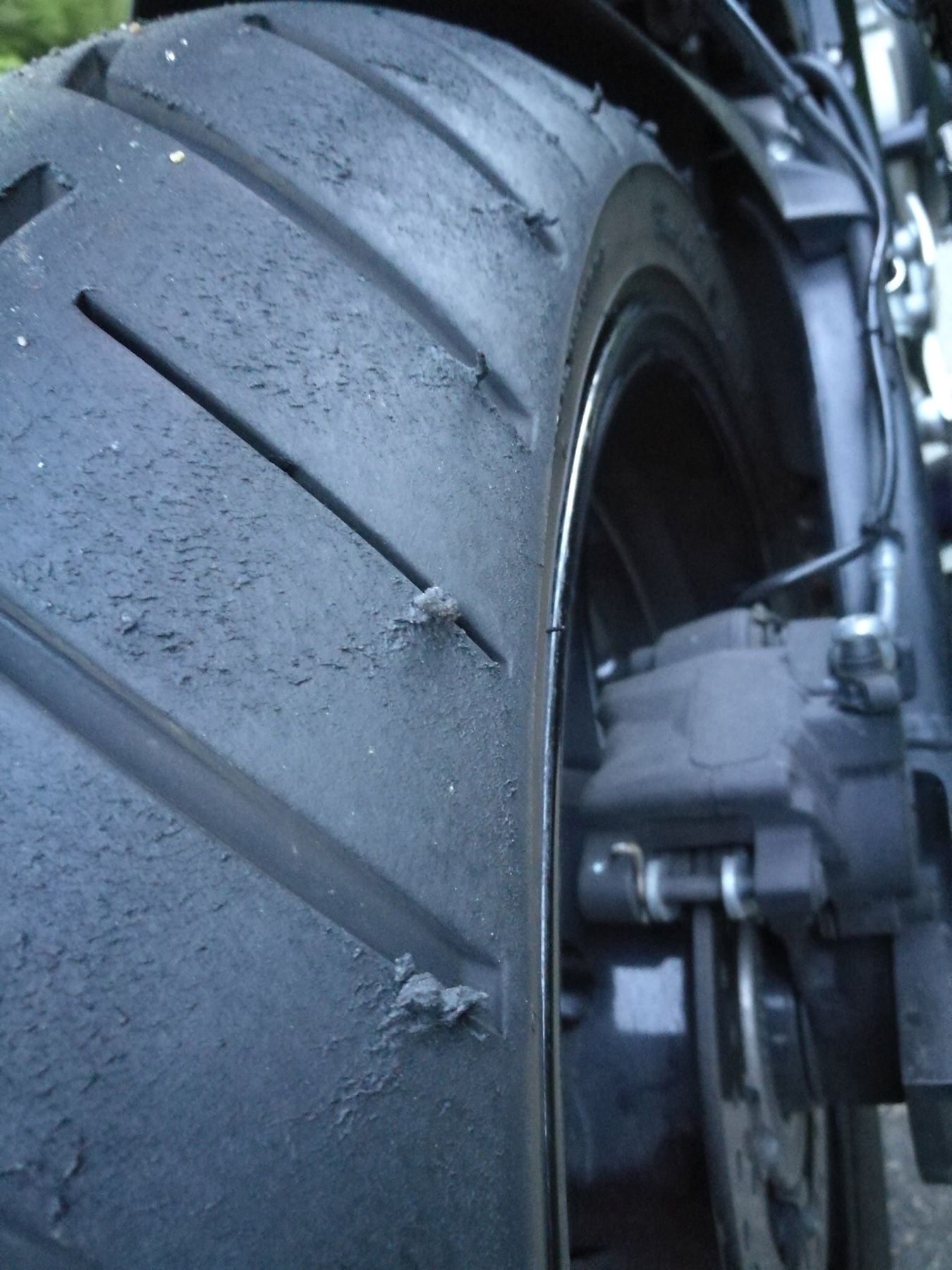CRA III, GS LC, nach jetzt 2750KM, hat der hinten noch 2.7mm auf den Flanken Richtung Kante, ich schätze mal da ist auch bei knapp 4000KM schluss. Die Mitte steht noch gut da.