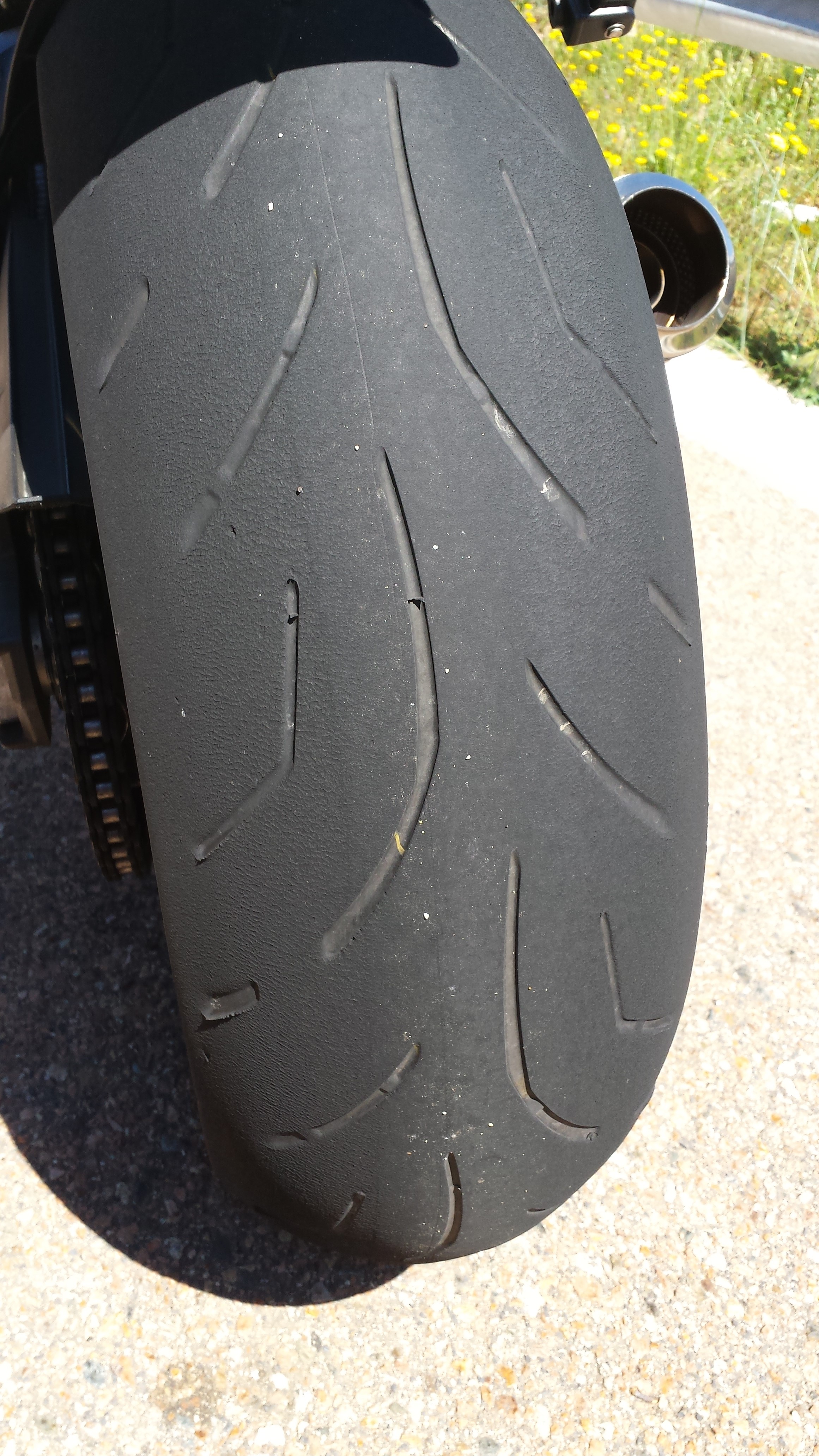 Jetzt als es wärmer wurde, fand ich den Reifen schon sehr stark was Feedback, Handling und Aufstellmoment angeht. Grip war ich nicht so überzeugt. Hatte den auch auf dem Fahrsicherheitstraining drauf. Vor allem in tiefen Schräglagen hat sich nicht wirklich vertrauen am Hinterrad aufgebaut. (zwischen 2,7 und 2,9 Bar drin) scratch