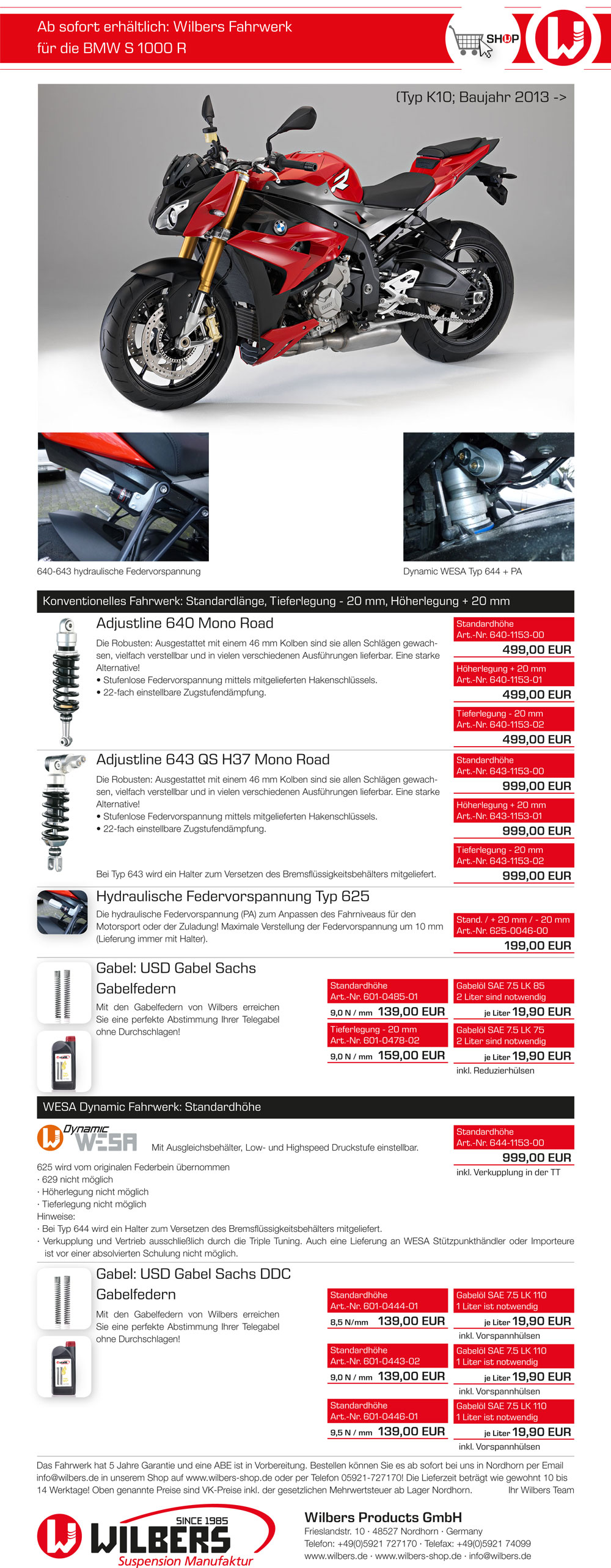 For the hardware update, we recommend to contact suspension specialist and race-partner Wilbers under Wilbers Products GmbH