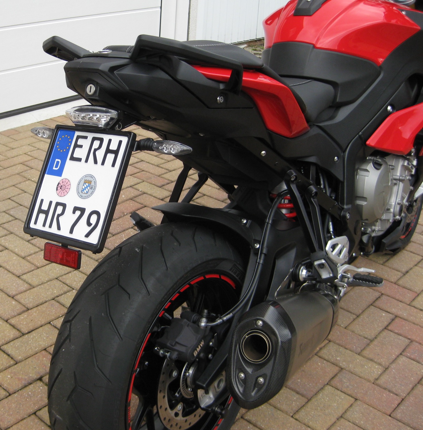 2) Von der - je nach Geschmack - besseren Optik wie oben bildlich dargestellt kann ich nicht profitieren, da ich ab Werk den Spritzschutz (siehe https://www.leebmann24.de/bmw-ersatztei ... bt=46_1776) verbaut habe, welcher das Kennzeichen eh nach vorne hin abdeckt.
