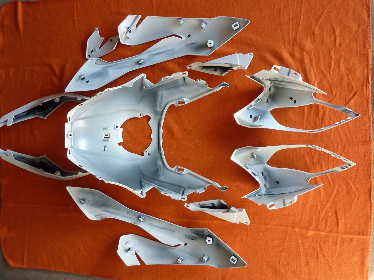 Es gibt wohl nur eine schraube vorne in der Nähe der Gabel und die ist versteckt, also von der Innenseite zu lösen. Der Rest sind diese Kunststoff- Clips. Ich glaube 5 Stück [emoji848]. Diese sind mit einer kleinen Metallklammer versehen/ gesichert. Diese Befestigung meine ich...