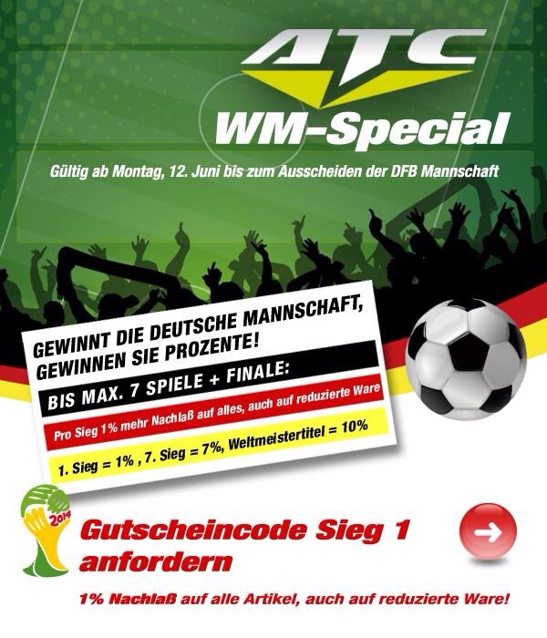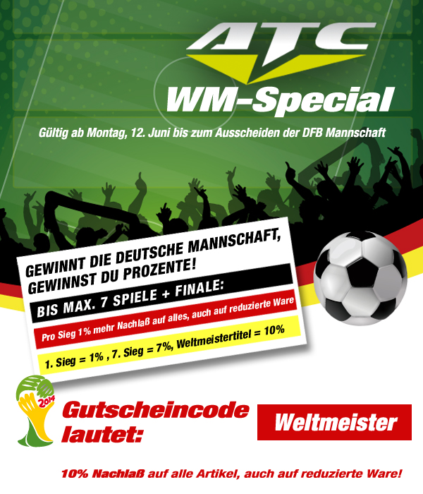 GEWINNT DIE DEUTSCHE MANNSCHAFT GEWINNEN SIE PROZENTE! Einfach nach dem ersten Sieg der Deutschen Mannschaft den Gutscheincode: Sieg 1 eingegeben und weitere 1% auf alle Artikel sparen. Fiebern sie mit!