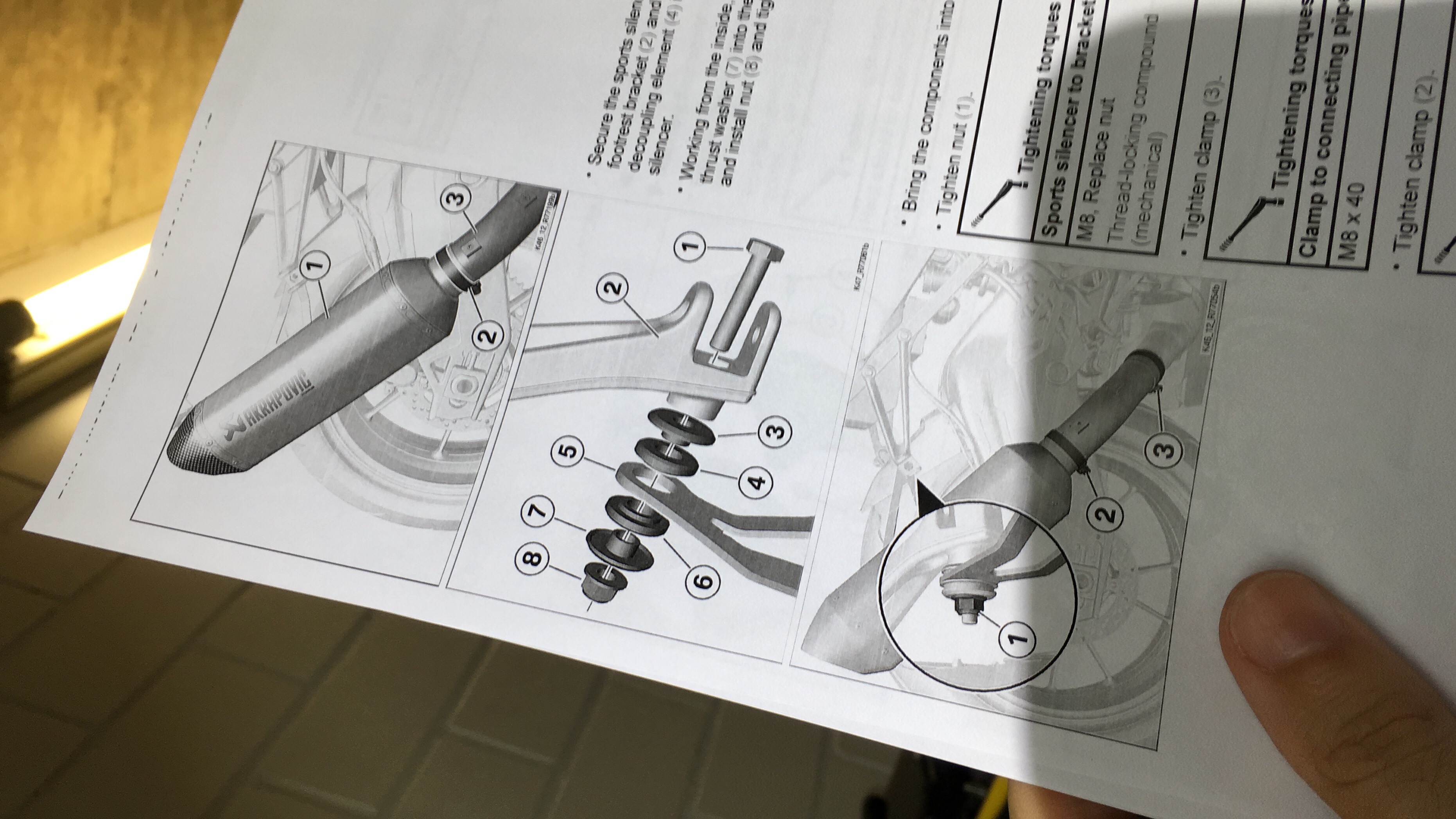 Um meine S1000RR Mj. 15 von Einzel- auf Soziusbetrieb umzurüsten muss ich die Akrapovic Carbonhalterung abbauen und die Fußraste anbauen.