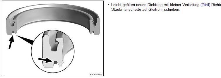 Heute habe ich die Staubschutzkappe mal abgenommen um zu sehen wie darunter aussieht. Ich bin ein wenig überrascht über die Einbaulage des Simmerringes. Vielleicht kann jemand mal bei seiner XR nachschauen oder hat das schon mal und kann mir direkt sagen ob das so richtig ist. Laut WHB würde ich fast sagen nein, andererseits sieht der eingebaute Ring auch anders aus als dort abgebildt.