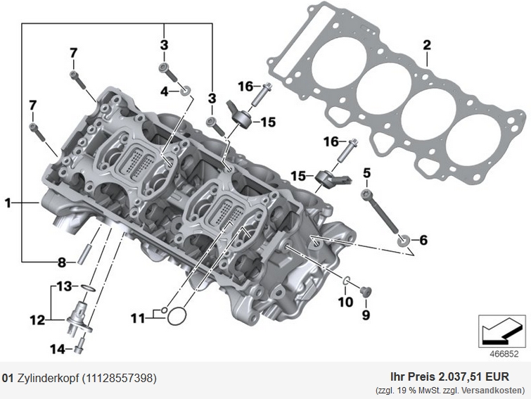 Die oder das Teil heißt Lagerbrücke und scheint zum Zylinderkopf zu gehören. Daher wohl auch der Preis von über 2000€.
