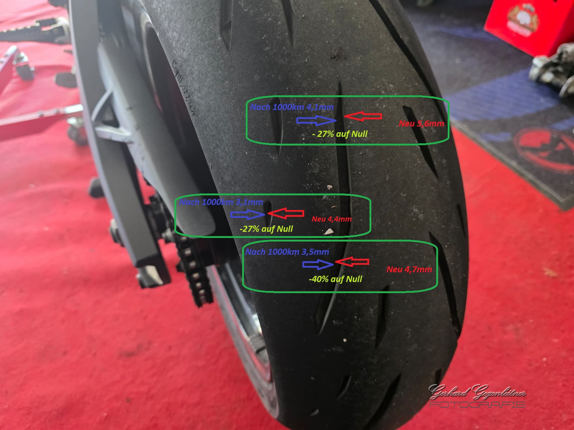Dann wird der Schulterbereich wohl mit ca. 2500km Laufleistung die 1,6mm unterschritten haben.