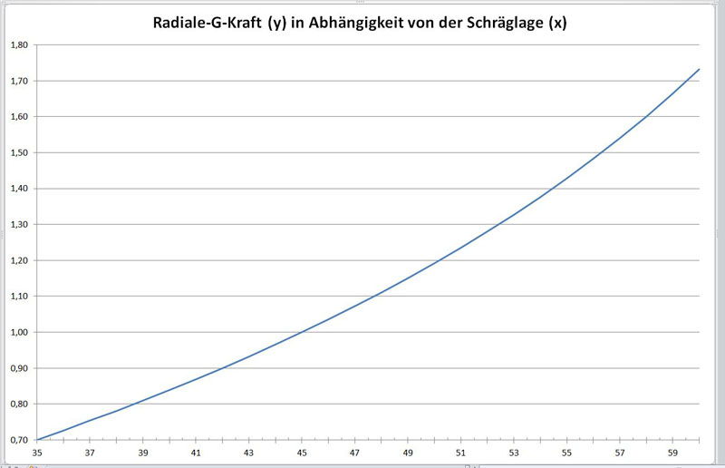 57° Schräglage bedeutet ungefähr 1,5 G radiale Fliehkraft