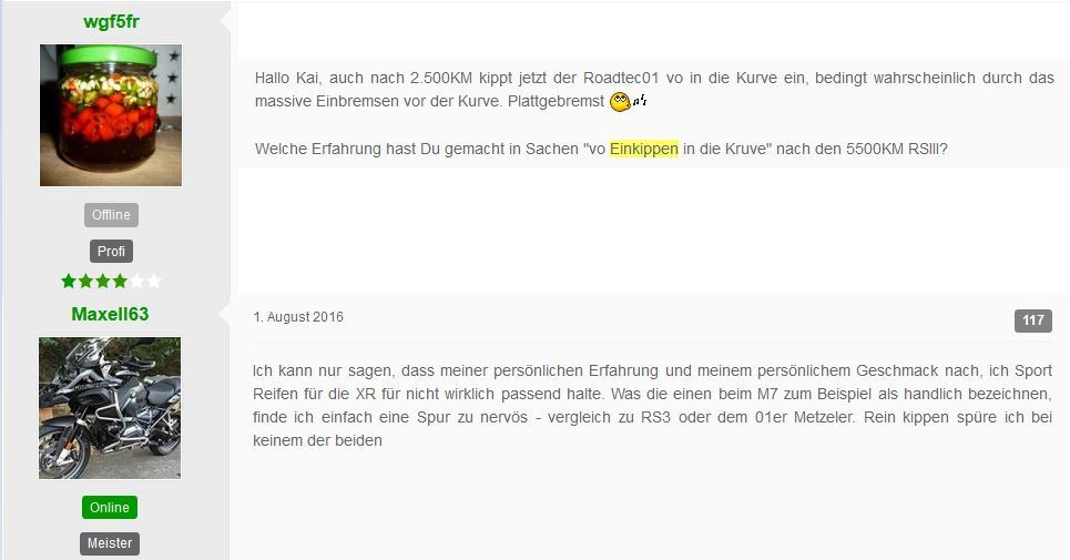 Maxell63 hat geschrieben:MarcP hat geschrieben:Der Roadtec nach ca 3500 bis 4000 km in der Art abbaut, dass er kipplig wird, trotz runder Fahrweise. Profiltiefe war noch gut 4 mm Kennt Ihr dieses Phänomen bei dem Reifen ?