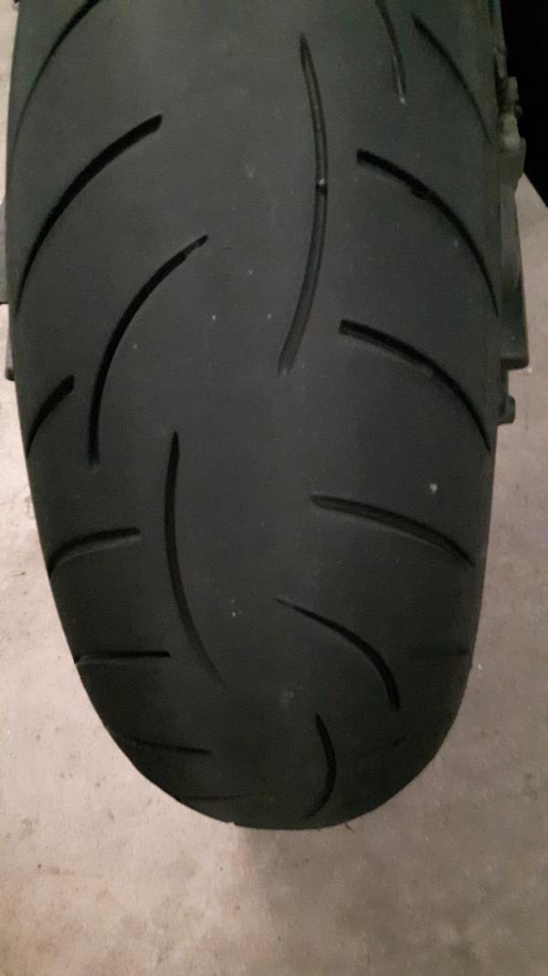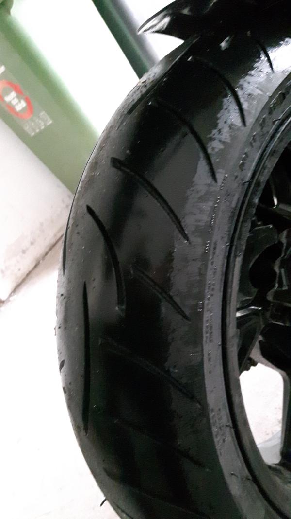 Die Ernüchterung kam dann im Trockenen. Da fiel mir dann die im Vergleich zum Z8 anders ausgeformte Kontur und das Profil des Hinterrads auf. Zumindest etwas weniger Abrollkomfort dürfte ne objektive Aussage sein, wie mir die Kontur gefällt eher subjektiv und bei jedem anders. Nicht dass der RT01 nicht funktioniert, im Gegenteil, egal in welchen Merkmal, ob Handlichkeit, Einlenkverhalten usw., scheint der RT01 etwas messbares zugelegt zu haben. Auch beim Verschleißtest nach LeMans gabs nach 2700 km Hinweise darauf, dass er auch bei der Laufleistung besser sein könnte. Dieser Unterschied kann aber auch noch im Bereich von Messungenauigkeiten liegen, wie will man 0,2 mm (auch mit nen digitalen Präzisionsmessinstrument) verlässlich messen. Wenn der Test doppelt so weit gegangen wäre und auch der Verschleiß dann 0,4 mm gewesen wäre, hätte es im besten Fall irgendwelche Prozentwerte bestätigt, mit denen der Hersteller wirbt, aber das ist mir ehrlich gesagt nicht so wichtig.