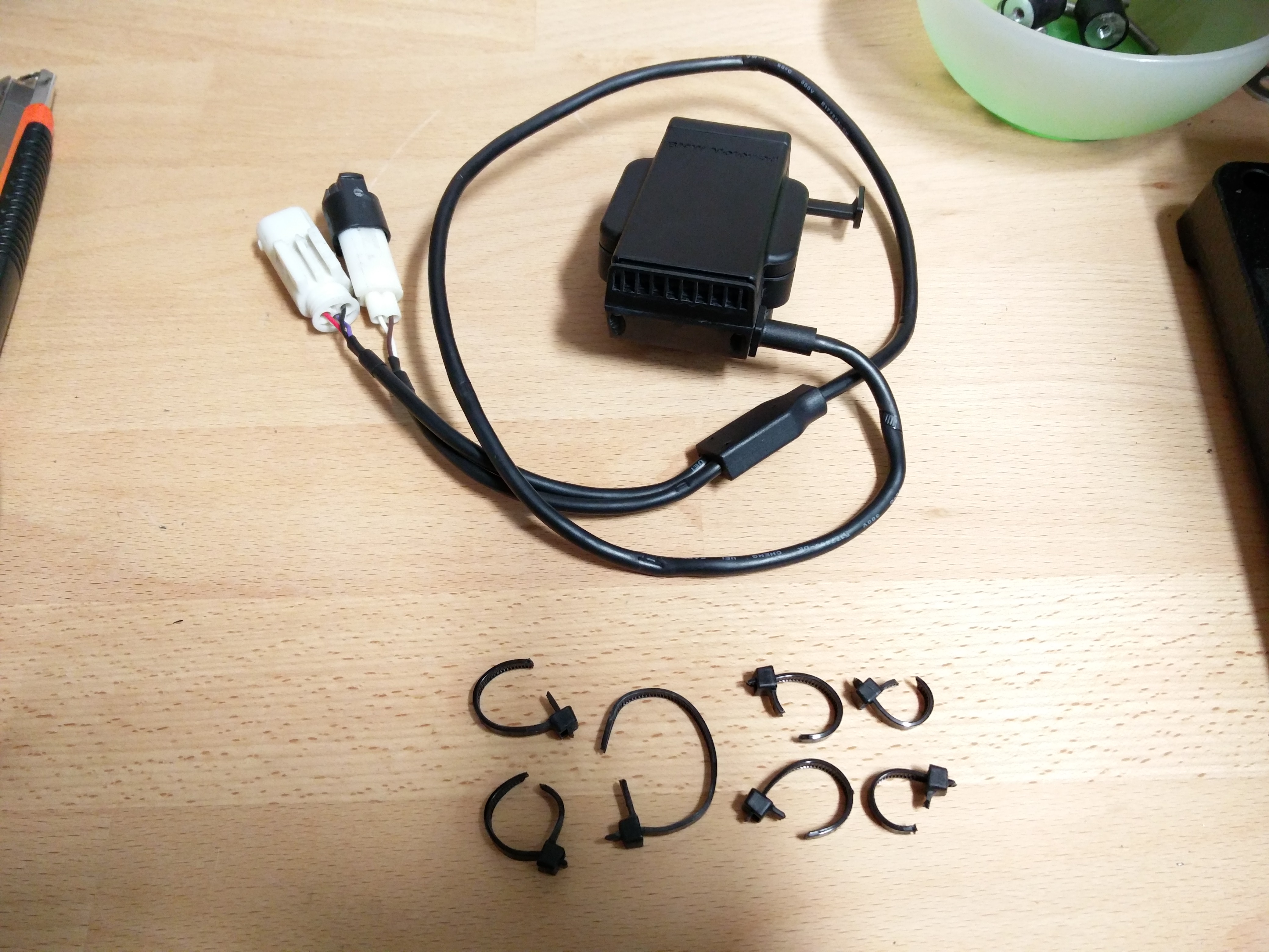 3) kompletten Kabelstrang hinter dem Motorsteuergerät entlang legen (es muss gelöst werden. Hier habe ich mit zwei Klebepads und Kabelbinder die Kabel fixiert. Ganz wichtig: Kante des Motorsteuergerätehalters abrunden, sie ist sehr scharfkantig)