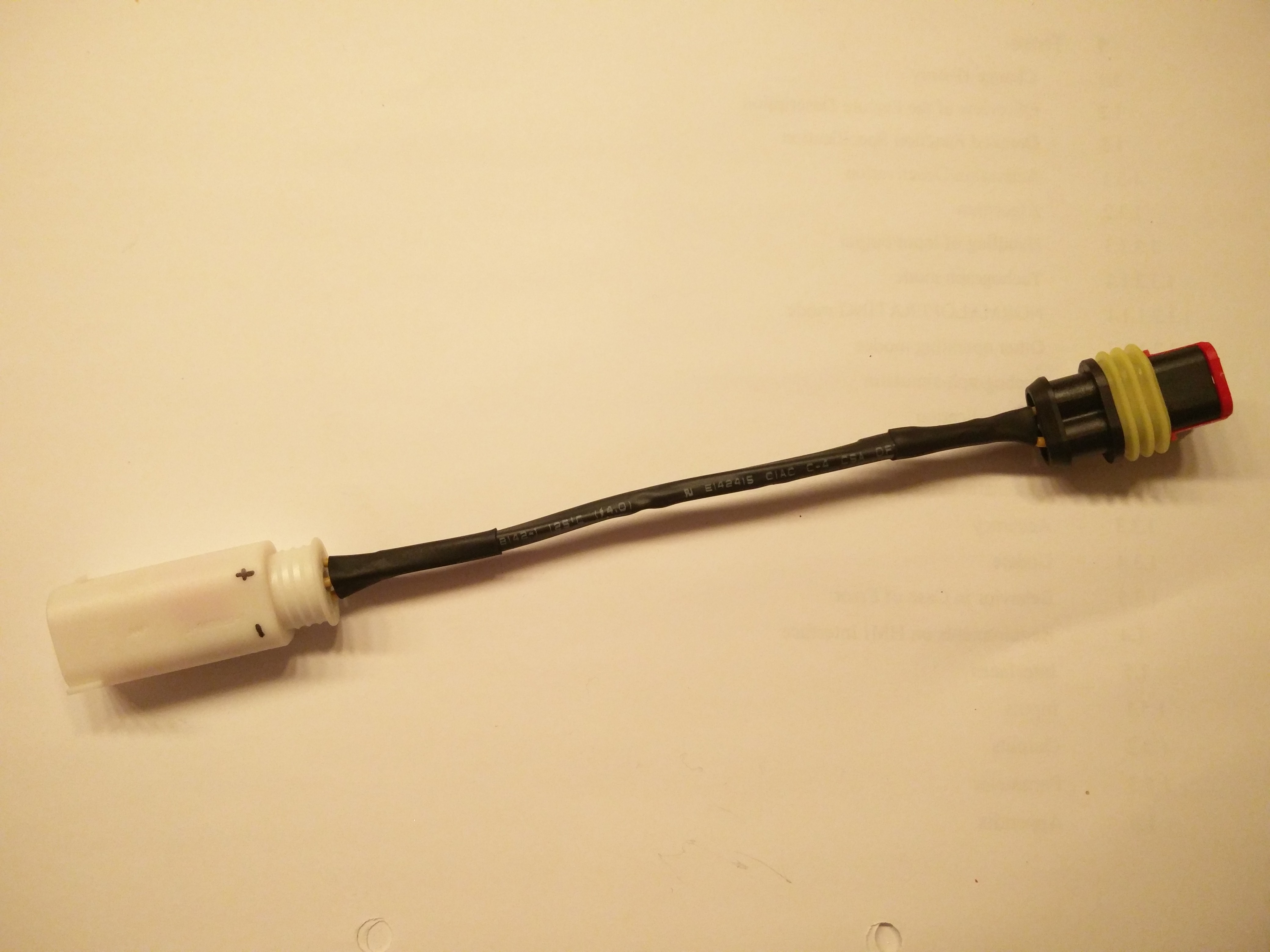6) vorne kommt dann mein Adapter zwischen AMP Superseal und Cartool (wer das Cradle neu kauft, hat natürlich Litzen, die er direkt an einen Cartool-Stecker anlöten kann)