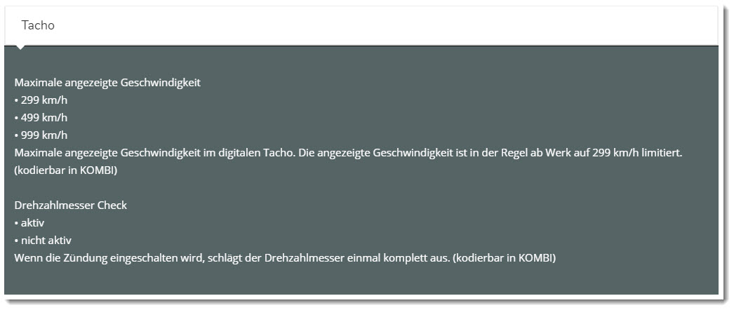 Eine weitere Möglichkeit wäre vielleicht das GS-911. Das ist aber deutlich teurer und ich kenne den genauen Funktionsumfang nicht. Da müsstest Du Dich auf der Seite mal einlesen oder jemand aus dem Forum hier kann Dir verbindlich sagen, ob man den Tacho damit programmieren kann. Hier der Link: