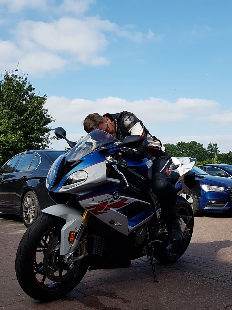 Ich habe auch noch andere Superbikes probiert aber das ist teilweise wirklich schwierig, auf der RSV4 zB hatte ich das Gefühl, die Knie bei den Ohren zu haben, unfassbar kompakt das Ding.