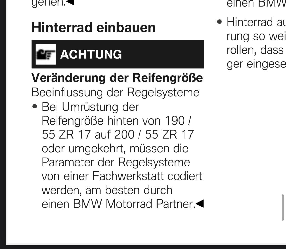 Ich habe mir für meinen nächsten Satz einen 200er Hinterreifen zugelegt.