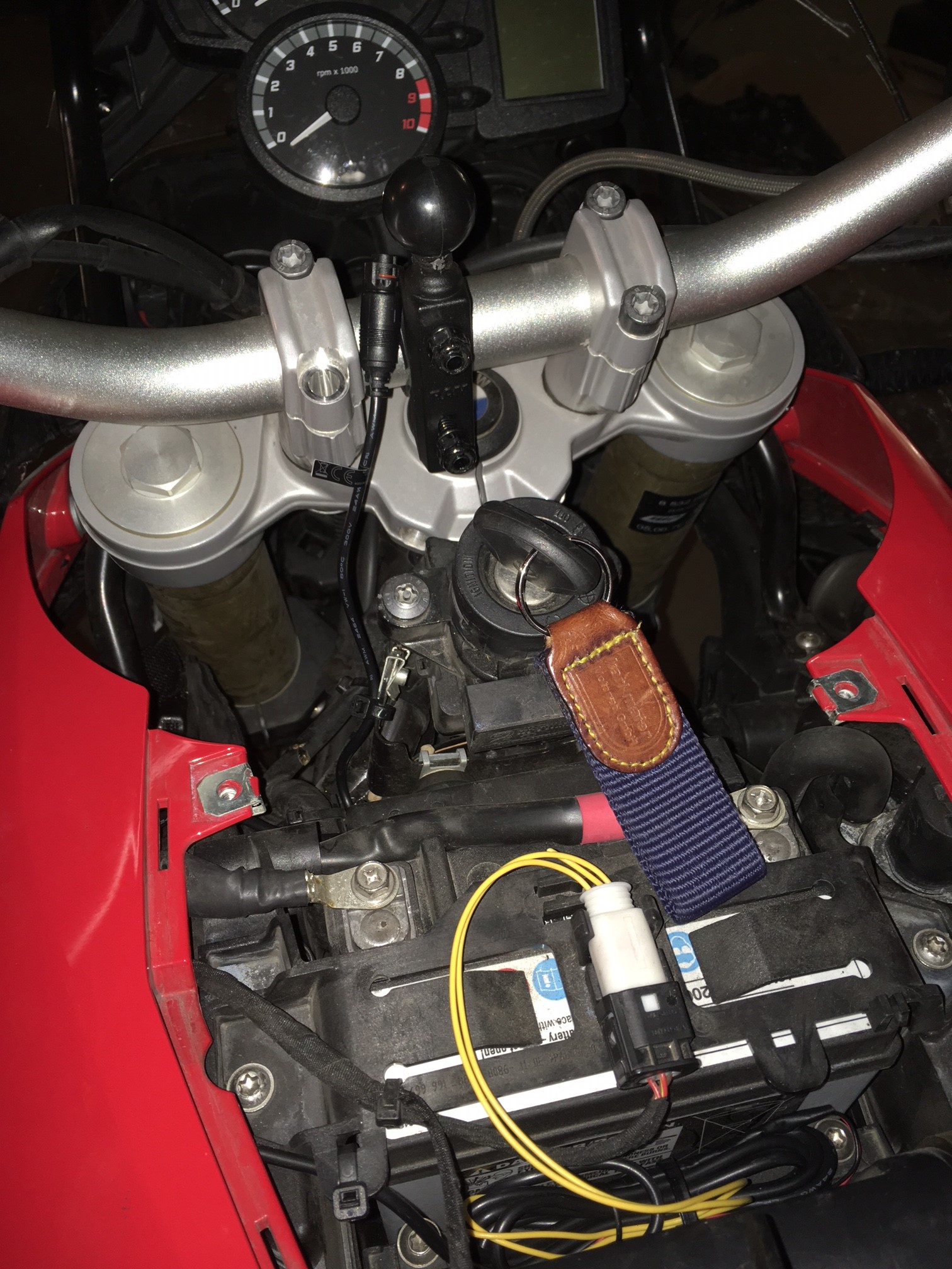 So, habs endlich geschafft Bilder von der Montage S1R und 800GS zu machen. Einmal mit der Louise Ram-Mount Schraube + Kugel und an der GS mit der mitgelieferten. Cartool Stecker direkt vom :D (ohne Relais, da Aktivhalterung nicht am Moped verbleibt).