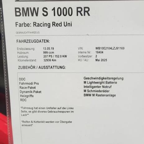 ich habe gerade die Möglichkeit eine S1000RR BJ 2019 zu kaufen. Diese hat 33 tkm und bereits 2 Vorbesitzer. Scheckheftgepflegt