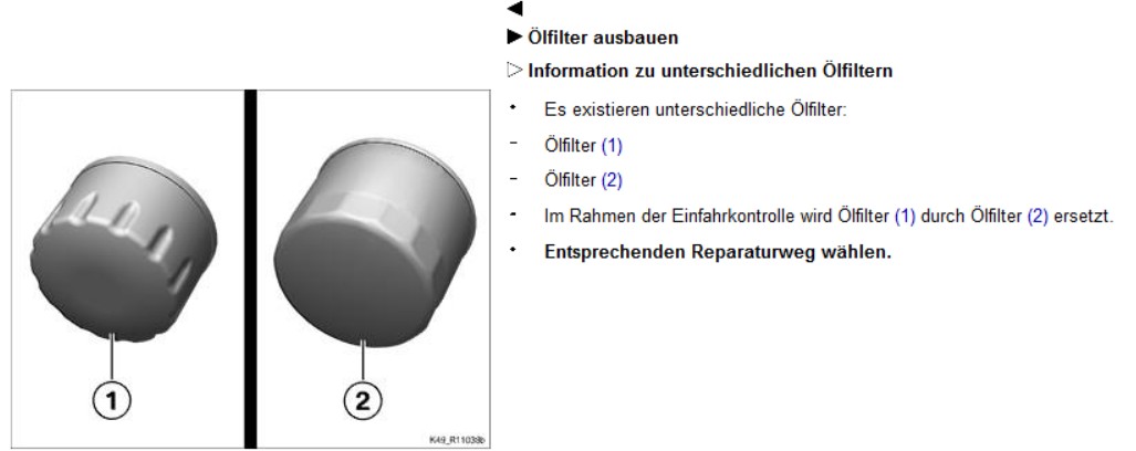 Die Teile# vom "normalen" Ölfilter ist 11425B70298 - wirst im Rahmen des Ölwechsels eh ersetzen (der "Einfahr"-Ölfilter ist im ETK nicht gelistet).